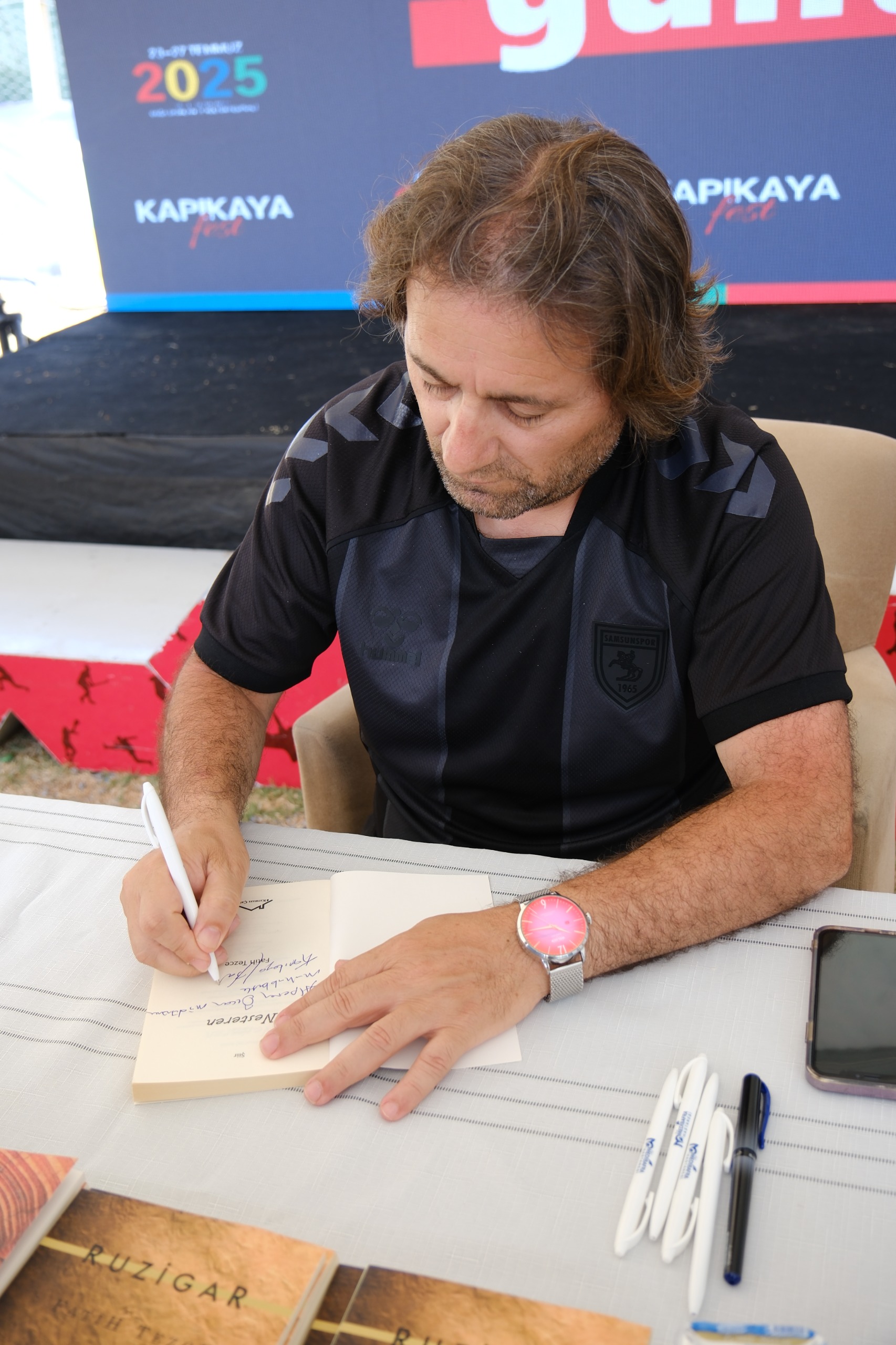 6.Uluslararası Kapıkaya Festivalinin 3. Gününde Kültür programı çerçevesinde kitaplarımızı sanatsever okuyucularımız için imzaladık. İlki yapılan bu etkinliğin sürekli olması temennimizdir. Hatta yılda 2 defa olmak üzere bir tanesi Temmuzda Kapıkaya’da, diğeri ise Kasım ayında Kızılırmak kenarı Sedde Park’ta yapılmasını kendi aramızda bile konuştuk. Bafra’da yaşayan şair ve yazarlar olarak şehrimiz için biz elimizi taşın altına her zaman koyarız.